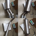 | 0026 55SR | Stainless steel tail pipe set 2 tail pipes Ø 84 mm angled, rolled edge, chromed, with adjustable spherical clamp connection |
